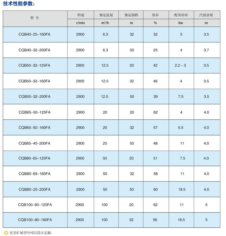 CQB-FA氟塑料磁力泵又稱其為氟塑料磁力離心泵、氟塑料磁力驅動泵、耐腐蝕磁力化工泵,CQB-FA襯氟磁力泵是我公司氟塑料磁力泵中的長支架款型。氟塑料磁力泵系列另有:CQB-F經典型、CQB-FJ升級型、IMD后拉式重型。 氟塑料磁力泵主要參數: 流量范圍:0.6m3/h-200m3/h 揚程范圍:2m-50m 適用介質:任意濃度的酸、堿、鹽、有機溶劑等